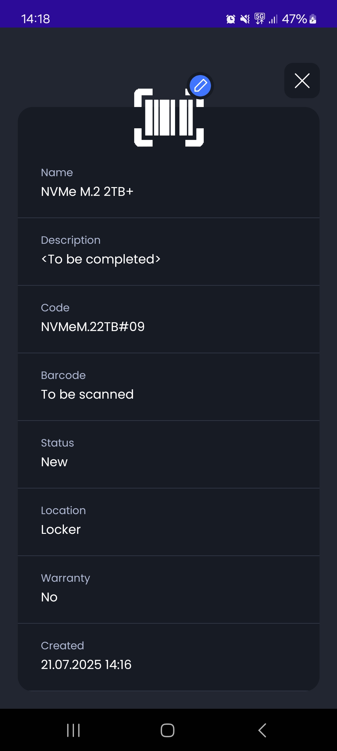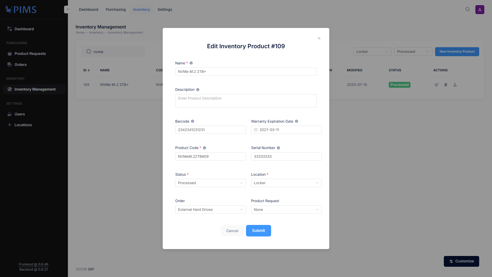 - Location Management: Managers can select from a list of existing locations to input the product’s location within the company (or they can add new locations on the fly), ensuring the physical location of every asset is tracked.