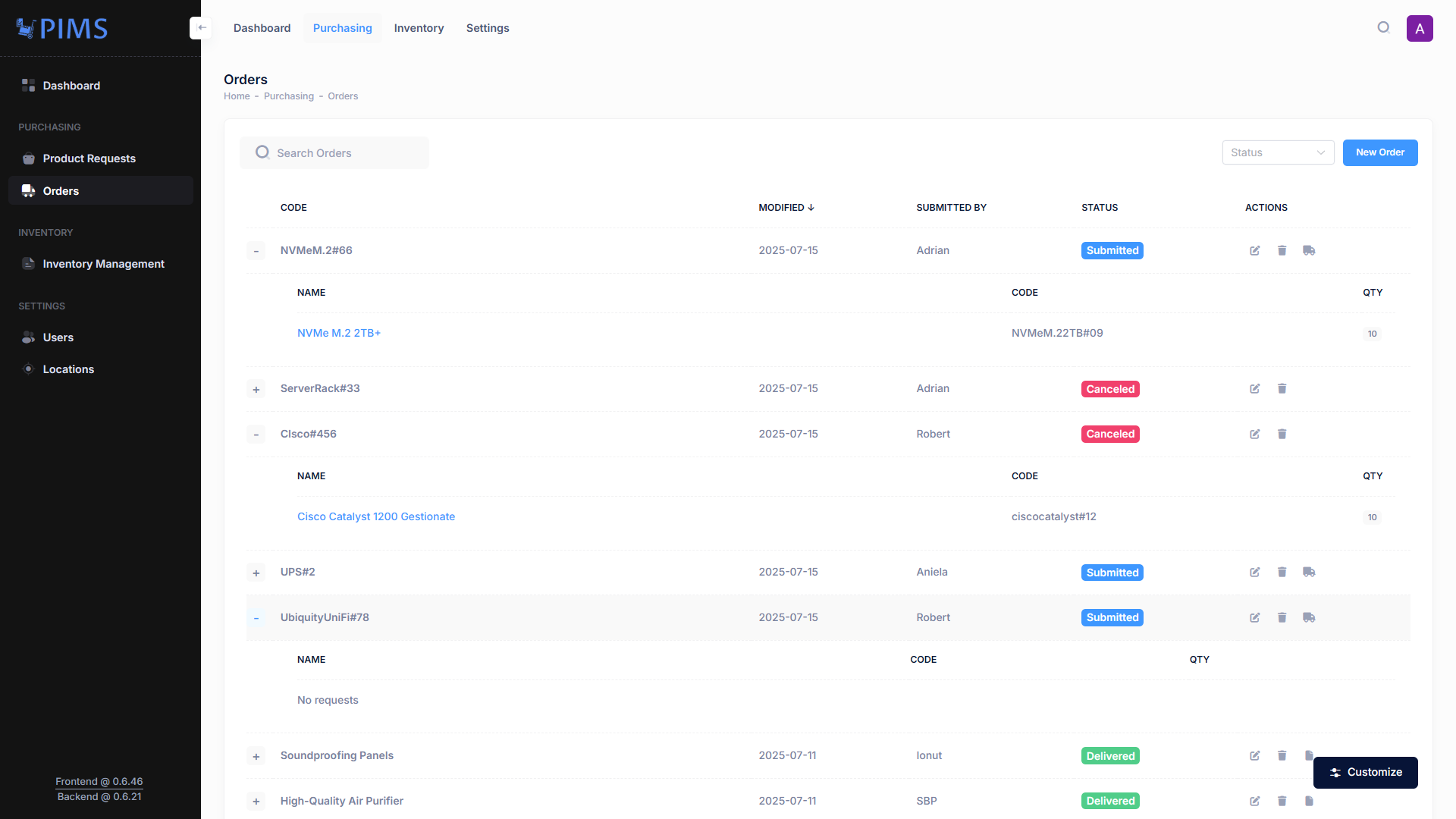 - Order Creation: Requesters can initiate new purchase orders with ease, adding all necessary details, including product links and multiple pricing options.